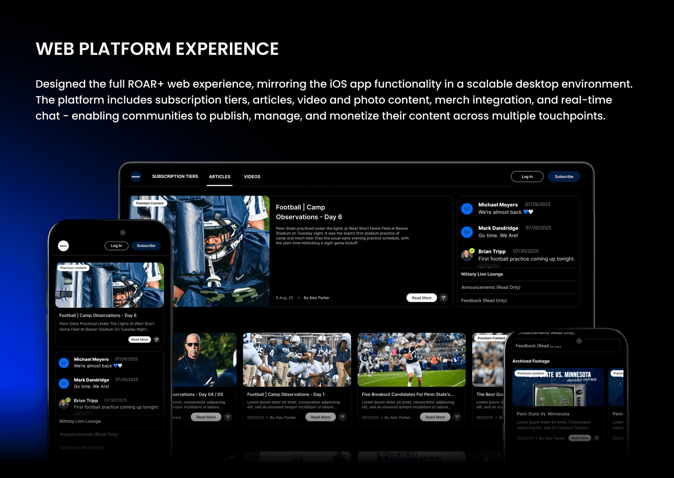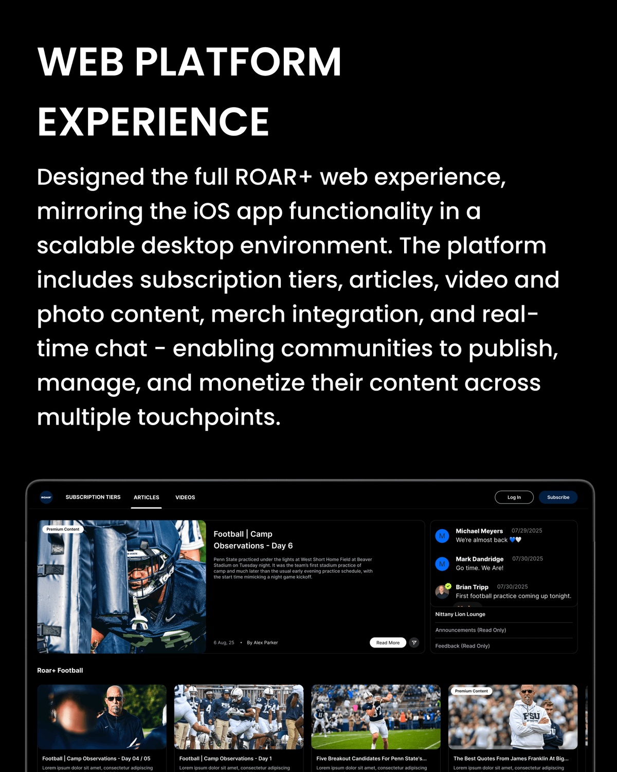 A membership platform connecting Penn State fans with student-athletes through exclusive content, community, and NIL-focused fundraising.
